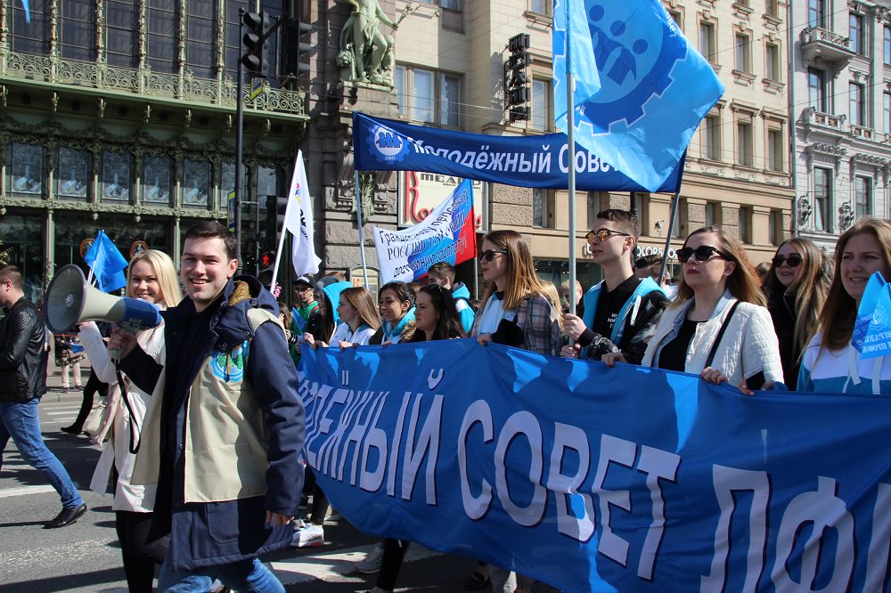 Отличительной чертой нынешнего Первомая в Петербурге стало большое количество молодежи среди участников акции солидарности профсоюзов. Колонной шли представители Молодежного Совета Ленинградской Федерации профсоюзов (ЛФП) под лозунгом «Бедная молодежь - государство без будущего!