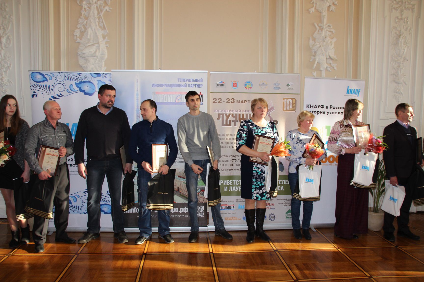 Торжественная церемония награждения победителей 10-го юбилейного конкурса «Лучший штукатур» состоялась вечером 23 марта в Великокняжеской гостиной Дворца Труда.
