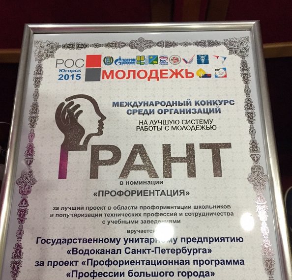 Проект «Профессии большого города» Совета молодежи первичной профорганизации ГУП "Водоканал СПб" признан лучшим в номинации «Профориентация» на Международный конкурсе среди организаций на лучшую систему работы с молодежью.