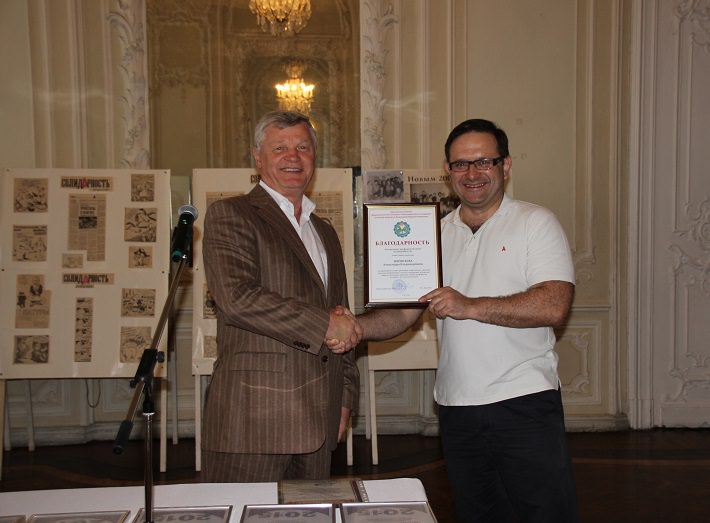Центральная профсоюзная газета «Солидарность» 19 августа отметила свое 25-летие и совсем недавно вышел юбилейный, 1000-й номер газеты. Сегодня во Дворце Труда главный редактор "Солидарности", секретарь Федерации независимых профсоюзов России Александр Шершуков принимал поздравления с двойным юбилеем от коллег из Ленинградской Федерации профсоюзов (ЛФП).