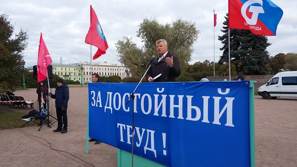 7 октября 2015 года, в Санкт-Петербурге на Марсовом поле прошел митинг, организованный Ленинградской федерацией профсоюзов (ЛФП) в рамках Всемирного дня действий «За достойный труд!».